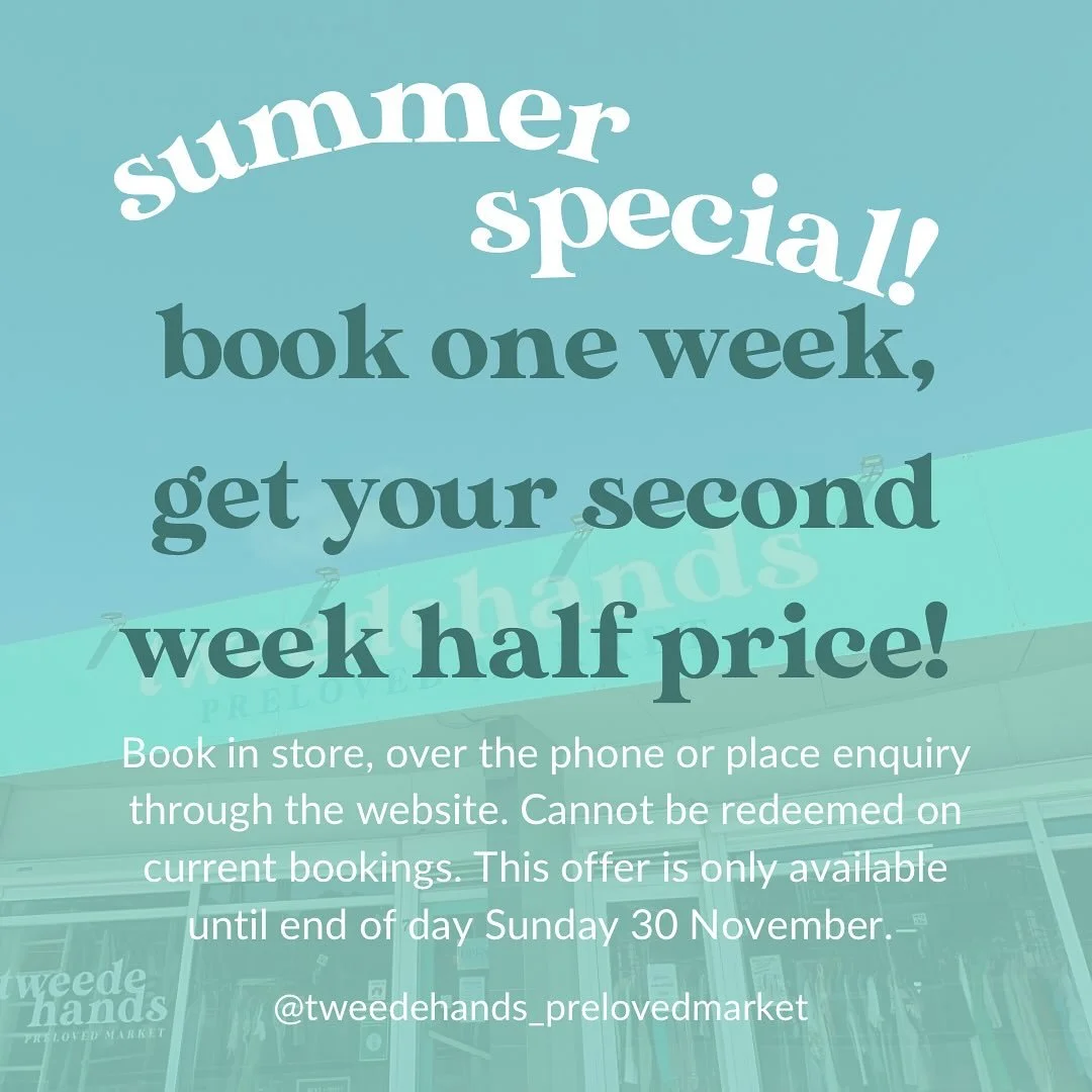 We are a ‘rent a rack’ market aiming to break the stigma around second hand clothing. Sustainability and preloved goodies is the heart of who we are, as our name literally means ‘second hand’ in Dutch. Don’t waste your time and effort selling your preloved goods at one-day markets or on online platforms. Rent a rack with us for 1 or 2-week’s rental, sell no longer wanted items from your wardrobe, and keep all the profit from your sales - we take no commission!